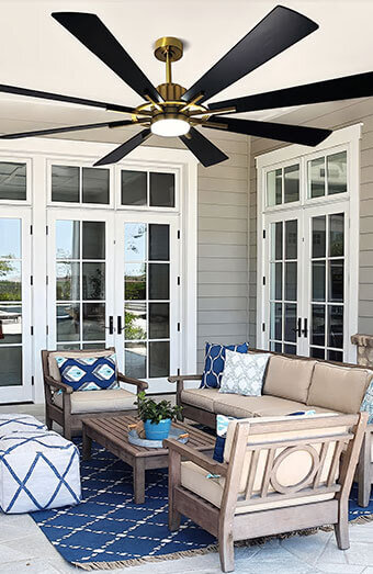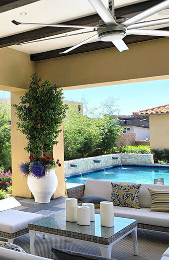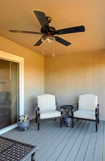Expert installation of IP-rated ceiling fans for decks, patios and verandas, specifically designed to withstand outdoor conditions and humidity.