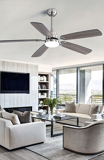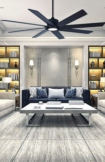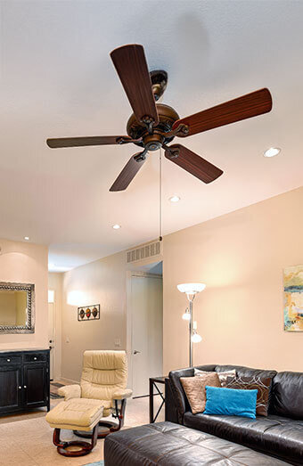 Professional installation of new ceiling fans in bedrooms, living rooms, patios and offices, with options for standard fans, modern low-profile designs, and custom mounting heights.
